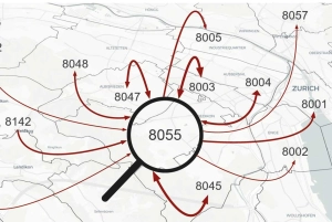 An international retailer carried out a location analysis based on the examination of two of its own and two competitor branches. For all four branches, the places of residence and work of the visitors were considered and determined over an extended period of time on the basis of mobile geodata (refined and aggregated in strict compliance with the GDPR). By means of a frequency analysis, it was possible to determine how often visitors of a branch were identified there during the observation period whose place of residence or work is located in a certain postcode area. An analysis of the visits to numerous competitors in the immediate vicinity made it possible to determine the proportion of visitors who were also identified at least once in the respective competitor’s branch during the observation period.